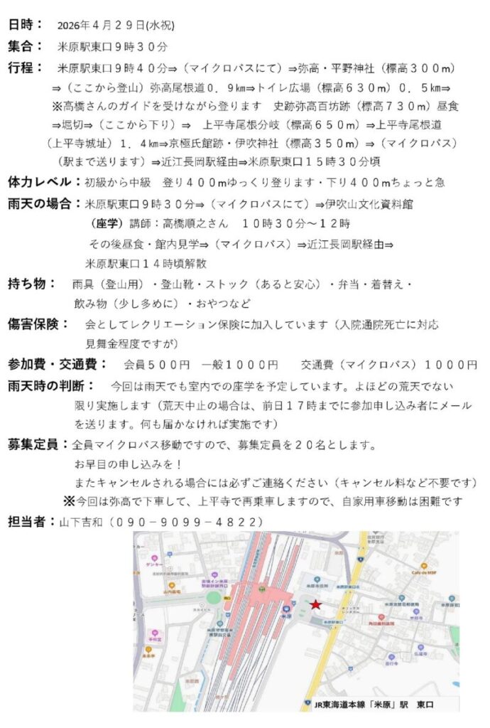 伊吹山の史跡をたどろう またアケボノスミレとの出逢いをもとめて