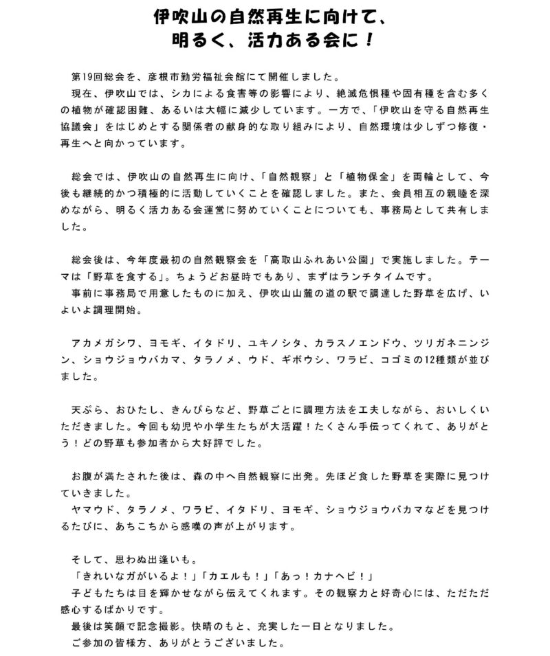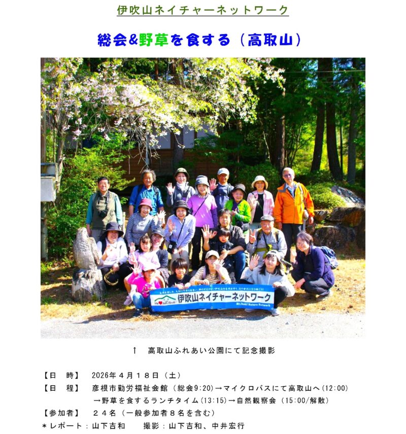 活動報告 2026年4月18日(土)総会&野草を食する(高取山) Tweet Share Hatena Pocket RSS feedly Pin it 活動報告 2026年3月7日(土)伊吹山麓で...